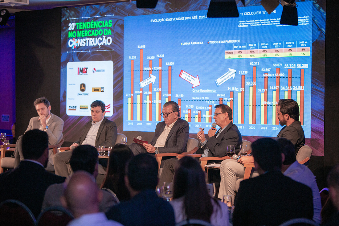 Com um novo formato, o evento foi dividido em quatro blocos, com Miranda trazendo aspectos e dados distintos do Estudo de Mercado para iniciar o debate entre os especialistas: Eurimilson Daniel, vice-presidente da Sobratema, Jonathan Pedro Butzke, head de Operações do Maquinalista, Lucas Novaes, diretor de Obras da Jofege Pavimentação e Construção, e Rafael Murrer, economista sênior do Banco Bradesco.