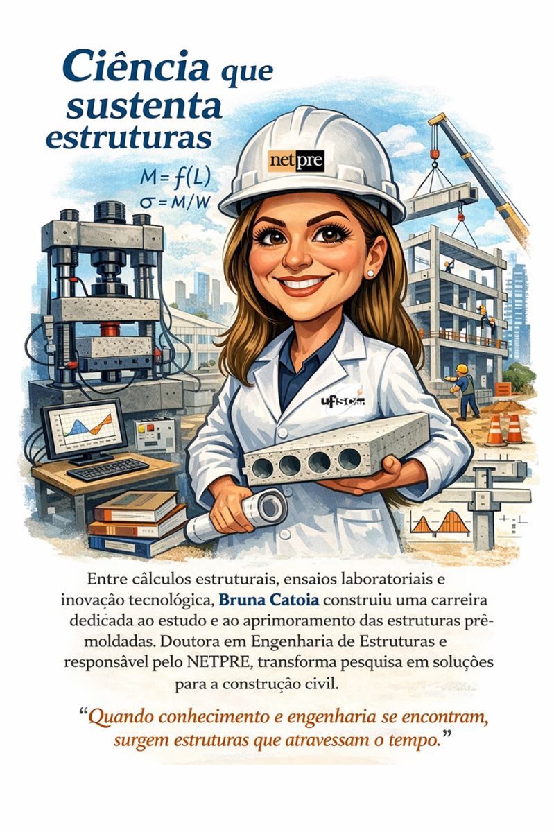 A engenharia estrutural brasileira tem avançado de forma consistente nas últimas décadas, impulsionada pelo trabalho de pesquisadores e profissionais que conectam o conhecimento acadêmico às demandas da construção civil. Entre esses nomes está Bruna Catoia, doutora em Engenharia de Estruturas e engenheira responsável pelo NETPRE – Núcleo de Estudos e Tecnologia em Pré-Moldados de Concreto, grupo de referência em pesquisa e desenvolvimento de sistemas construtivos industrializados.