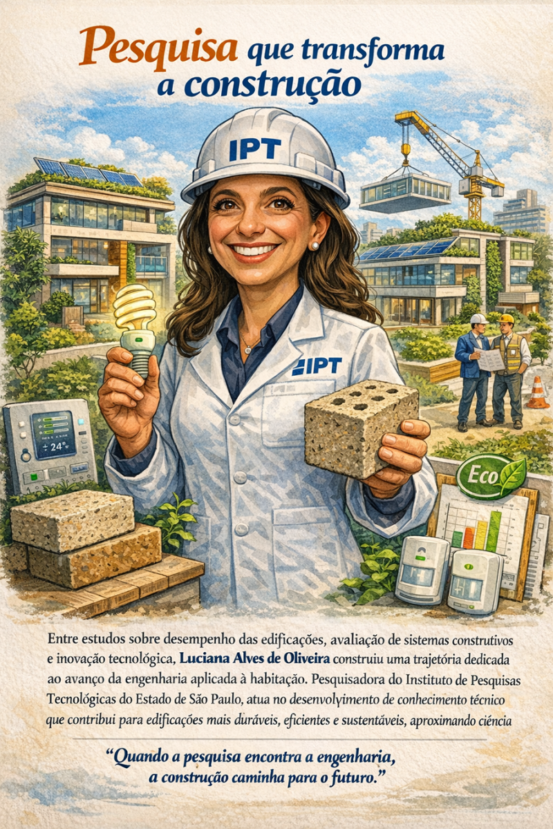 A evolução técnica da construção civil brasileira passa, cada vez mais, pelo desenvolvimento de pesquisas capazes de aprimorar o desempenho, a durabilidade e a sustentabilidade das edificações. Nesse cenário, a engenheira civil Luciana Alves de Oliveira destaca-se por sua atuação na geração e difusão de conhecimento aplicado ao setor.