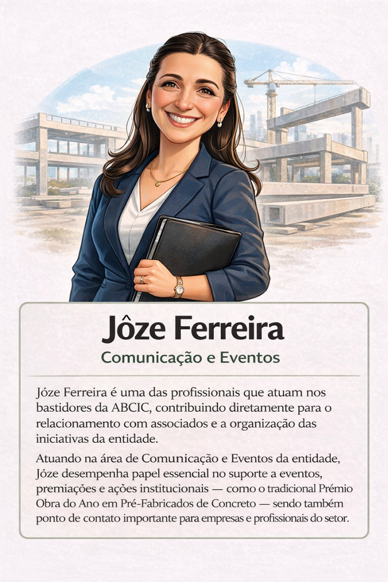 A participação feminina também tem sido fundamental para apoiar os diversos contextos de atuação da Abcic, oferecendo suporte à engenheira Íria, à diretoria e ao Conselho Estratégico. A equipe, formada por Daliana Cabral, analista Administrativo Financeiro; Jôze Ferreira, analista de Comunicação e Eventos; e Sylvia Mie, jornalista da Mecânica Comunicação Estratégica, assessoria de imprensa da entidade e agência de comunicação responsável pela redação e edição da Revista Industrializar em Concreto, tem contribuído para a operação efetiva das ações e das atividades do dia a dia da associação.