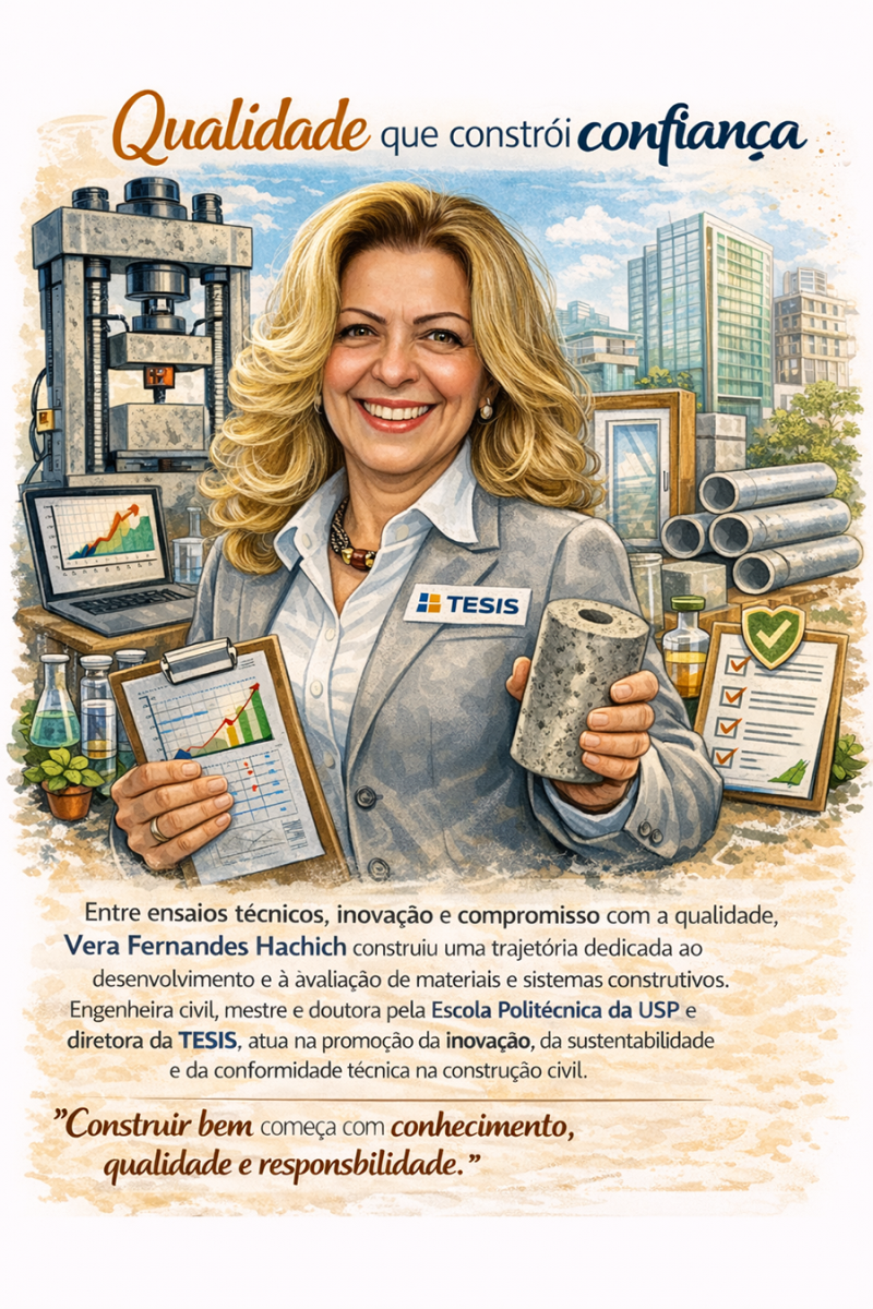 A busca por maior qualidade, desempenho e sustentabilidade na construção civil brasileira tem sido impulsionada por profissionais que dedicam suas carreiras ao desenvolvimento técnico do setor, como a engenheira civil Vera Fernandes Hachich, pesquisadora e diretora da TESIS – uma empresa do grupo INTERTEK, empresa de referência em avaliação técnica e gestão da qualidade de materiais e sistemas construtivos.
