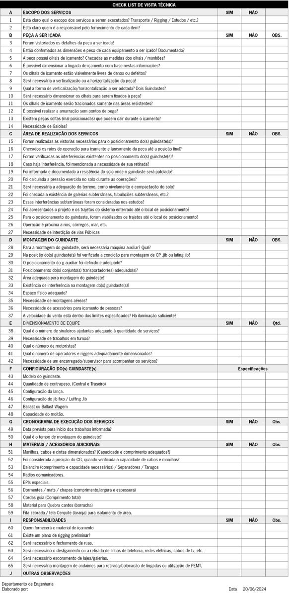 O checklist do plano de montagem, contido no manual Abcic, pág. 186, é um bom formulário para a coleta de dados.