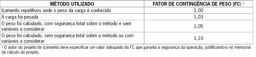 Um fator de contingência de peso (FC) deve ser aplicado majorando o peso da carga líquida e o peso.