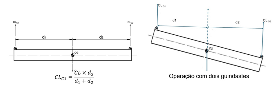 Outro fator relevante a ser observado nesse tipo de operação, quando a carga permanece na posição horizontal, é a necessidade de que ambos os guindastes iniciem e conduzam o içamento de forma simultânea. Essa sincronização é fundamental para evitar a transferência indevida de carga entre os equipamentos.