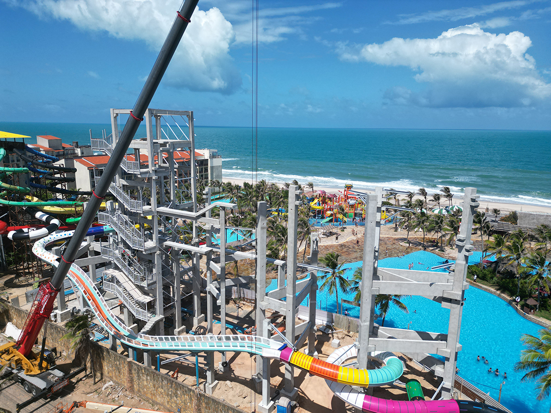 “O sistema não só garantiu a otimização do tempo de construção, como também concedeu outros benefícios técnicos significativos à atração: montagem com menos mão-de-obra no local, minimizando riscos de acidentes em um trecho do parque aquático Beach Park; produção simultânea dos componentes estruturais com outras etapas da obra, acelerando sua execução; e ainda uma qualidade superior da estrutura. Isso, sem contar o ganho ambiental, com a geração de menos resíduos e a utilização de materiais de forma mais eficiente, em um canteiro localizado em trecho litorâneo tão especial quanto o Parque das Dunas, no Ceará”, saliente Ponte.