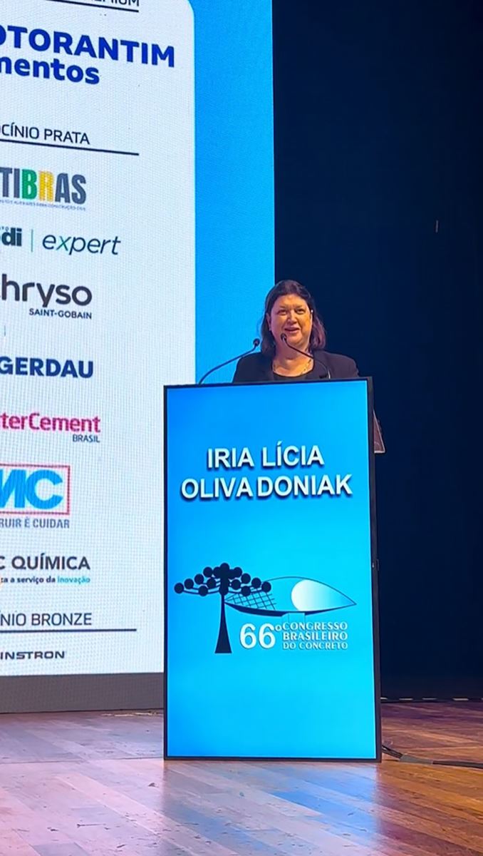 A engenheira Íria Doniak, presidente executiva da Abcic, destacou a importância do IBRACON como a inteligência do concreto no país e o fato de o Congresso ser realizado no estado do Paraná. “Como paranaense e curitibana, tenho muito orgulho de nosso estado e de nossa cidade, que sempre atuam para unir inovação e sustentabilidade”, disse.