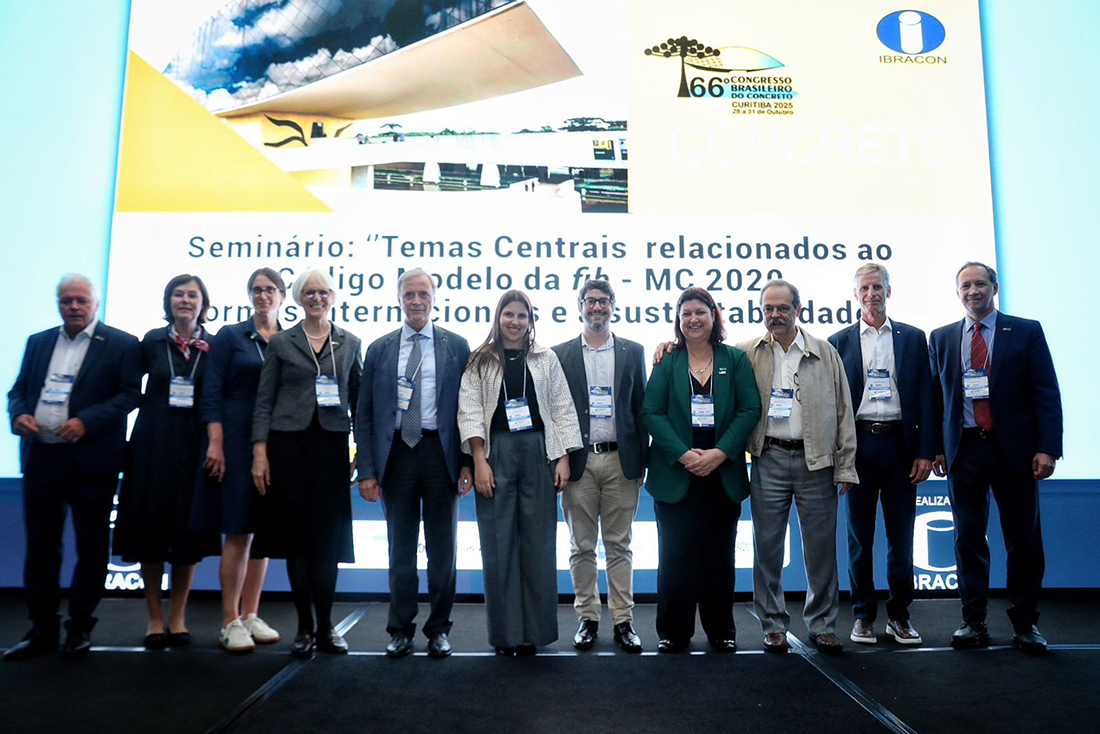 Íria, que é também presidente da International Federation for Structural Concrete (fib), salientou a relevância da entidade para o desenvolvimento da engenharia do concreto mundial, e o papel do grupo nacional brasileiro, composto por lideranças da Abece, Abcic e IBRACON, neste contexto. Ela ainda agradeceu pela oportunidade de realizar o “Temas Centrais relacionados ao Código Modelo da fib - MC 2020, normas internacionais e sustentabilidade”, no qual debatemos os principais temas da engenharia de concreto no mundo. Também participaram da abertura os engenheiros Maurício Bianchini e Tulio Bittencourt, diretor regional e diretor de Eventos do IBRACON, respectivamente, e Paulo Camillo Penna, presidente da ABCP.